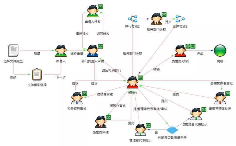“一网通办”是借助于工作流技术实现的。工作流是对工作流程及其各操作步骤之间业务规则的抽象、概括描述。其主要目的是为了实现某个业务目标,将业务流程进行分解,利用计算机在多个参与者之间按某种预定规则和过程来自动传递文档、信息或者任务,并对其进行监控,达到控制过程和提高工作效率的目的。而质管文件在提交过程中,涉及到业务部门、质管部门、校领导等多个部门内的多名教职工,完全符合一个流程的设计理念。