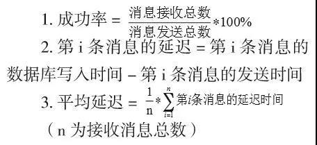 在方案验证环节,对系统可靠性(消息接收成功率)与及时性(消息的平均延迟时间(毫秒))进行了测试与考察,定义如下: