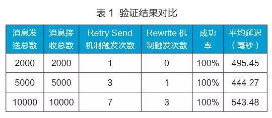 验证过程并没有考虑程序本身执行时间以及网络延迟的影响,可见随着消息发送的增加,消息的平均延迟时间差别并不大;另外,在验证过程中,遇到了RabbitMQ因网络连接超时等情况而发送失败的情况,但方案中“Retry send机制”与“Rewrite机制”保证了消息仍然被准确接收,验证了方案的可靠性。