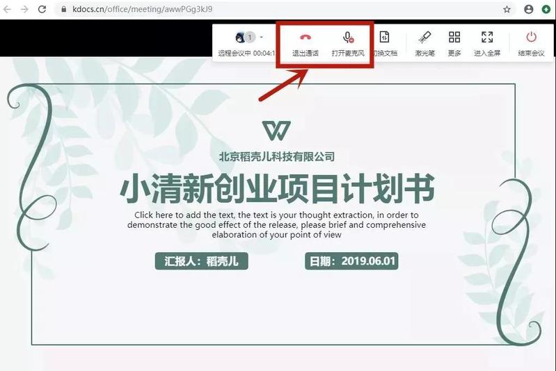 并且点击旁边的【加入通话】,直接一键语音加入会议,配合激光笔在PPT上标记重点,声画合一,虽然远在天边依然可以掌控全场。
