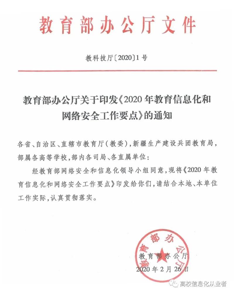 2020年教育信息化和网络安全工作要点