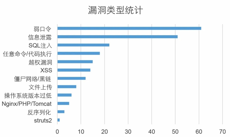 对近几年整改的漏洞类型统计发现,每年排名第一都是弱口令,说明学校业务部门管理老师和系统开发厂商缺乏基本的网络安全意识;排名第二的是信息泄露,随着对个人隐私保护的重视,这个问题越来越多。