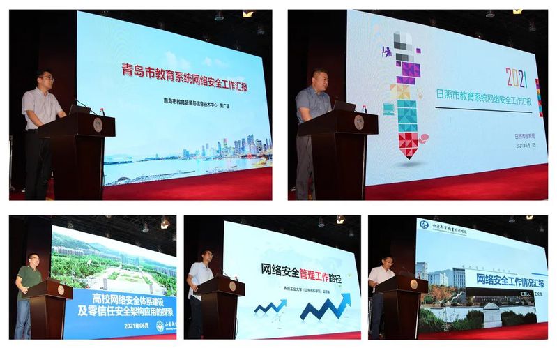 经验交流环节,青岛市教育局、日照市教育局、齐鲁工业大学(山东省科学院)、山东师范大学、山东商业职业技术学院分别从网络安全管理工作路径、高校网络安全体系建设等方面介绍了教育网络安全工作经验。