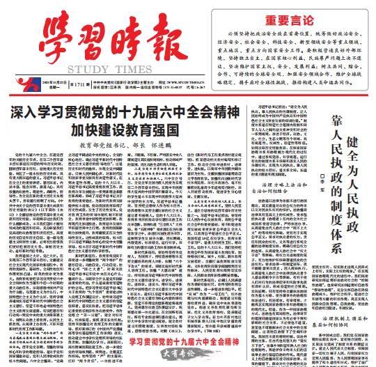 ▲ 图 | 《学习时报》2021年11月22日 头版 截图