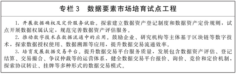 (二)加快数据要素市场化流通。加快构建数据要素市场规则,培育市场主体、完善治理体系,促进数据要素市场流通。鼓励市场主体探索数据资产定价机制,推动形成数据资产目录,逐步完善数据定价体系。规范数据交易管理,培育规范的数据交易平台和市场主体,建立健全数据资产评估、登记结算、交易撮合、争议仲裁等市场运营体系,提升数据交易效率。严厉打击数据黑市交易,营造安全有序的市场环境。
