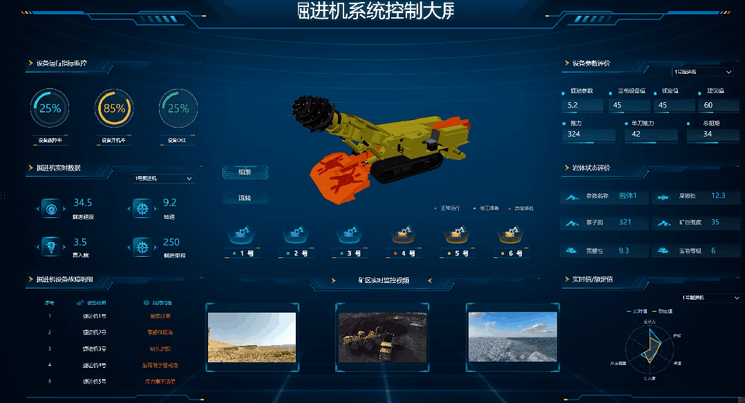 数字车间:通过投射物理世界的人,物到大屏, FineVis通过数字化的设备监控, 智能化的根据指标来评价设备的状态,监控和提醒设备的生命周期,进一步提高工作效率,降低设备成本。产出情况的实时呈现和当天的生产指标的对比,管理者可以更精确的利用人工,推进项目进度。